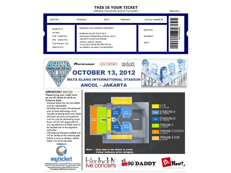 - Online: Starts Saturday, 9 June 2012 @ www.myticket.co.id | Payment Method: Credit Card.