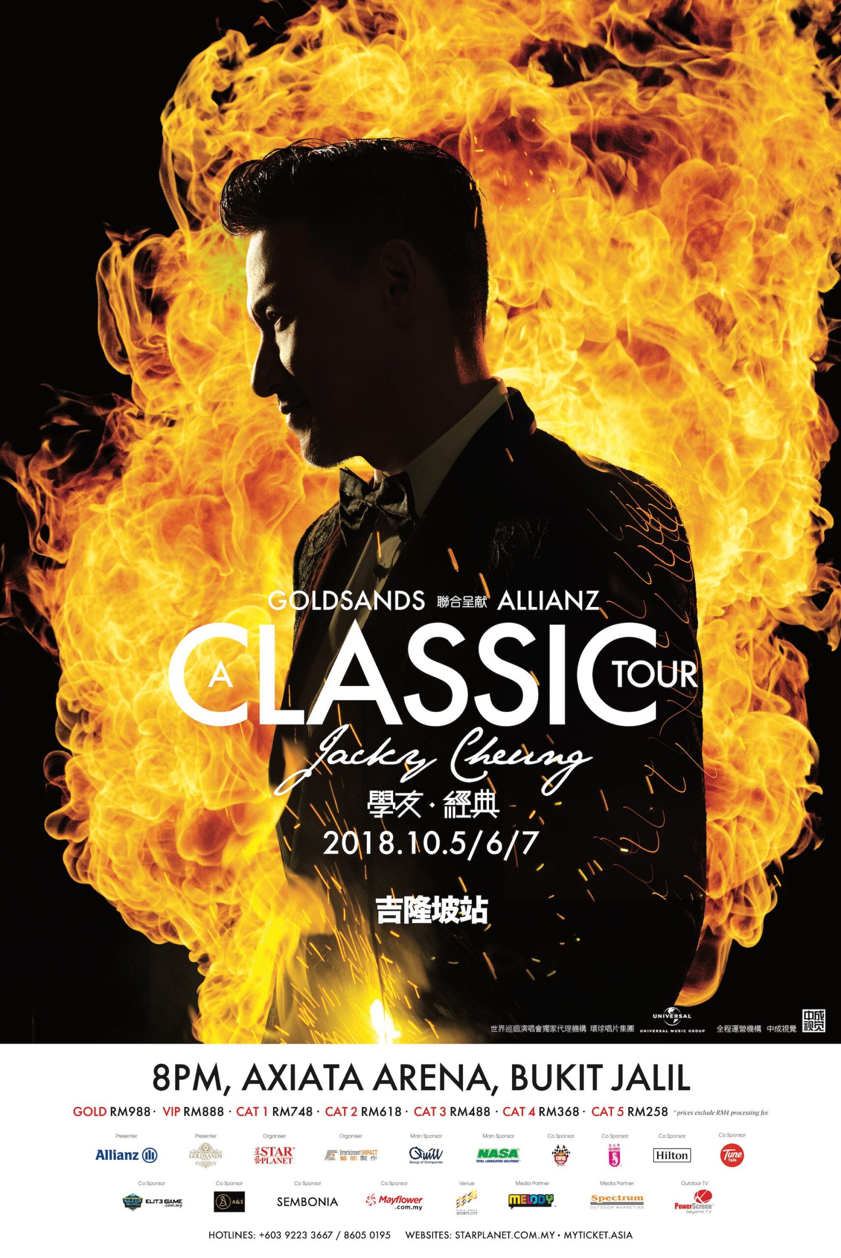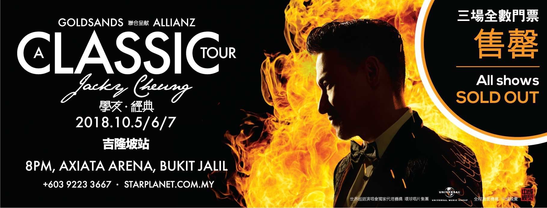 Proudly presented by Allianz Malaysia Berhad, organized by Star Planet, legendary “God of Song” Jacky Cheung will return to Kuala Lumpur for a 3-night performance on 5, 6 & 7 October 2018 at 8pm.