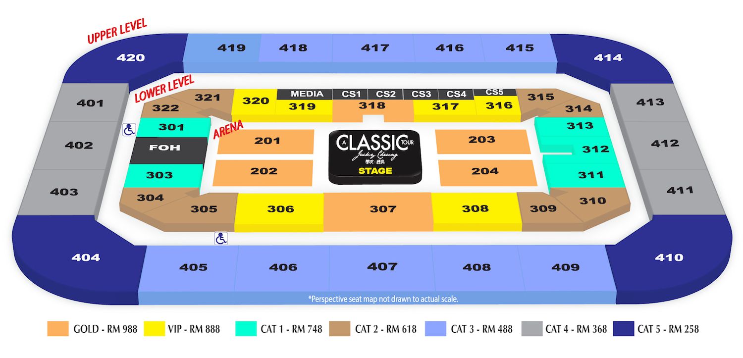(1) Ticket prices are quoted in Ringgit Malaysia and subject to RM4 ticket fee (2) No admission for children aged 2 or below (3) All offers and promotions are subject to terms and conditions. (4) Internet Sale is via www.myticket.asia from 4 September 2018, 11am and each transaction limits to 4 tickets only. (5) Strictly No professional photography. Audio or video recording of any kind is not allowed throughout the performance (6) Child must be of 95cm height and below to be eligible for child ticket priced at RM50 without seat, while child at height above 95cm must purchase tickets according to price scale. For safety reasons, the organiser reserves the right to limit the total quantity of child tickets issued (7) Tickets to the “Wheelchair accessible viewing platforms” are priced at RM258 and can only be purchased via the Organiser at +603 9223 3667 (8) Ticket(s) purchased shall not be resold or offered for pre-sale at a premium over the face value of the ticket or used for advertising, promoting or other commercial purposes or to enhance the demand for other goods or services (9) The organiser reserves the rights to alter or amend any terms and conditions relating to promotions or ticketing without prior notification.