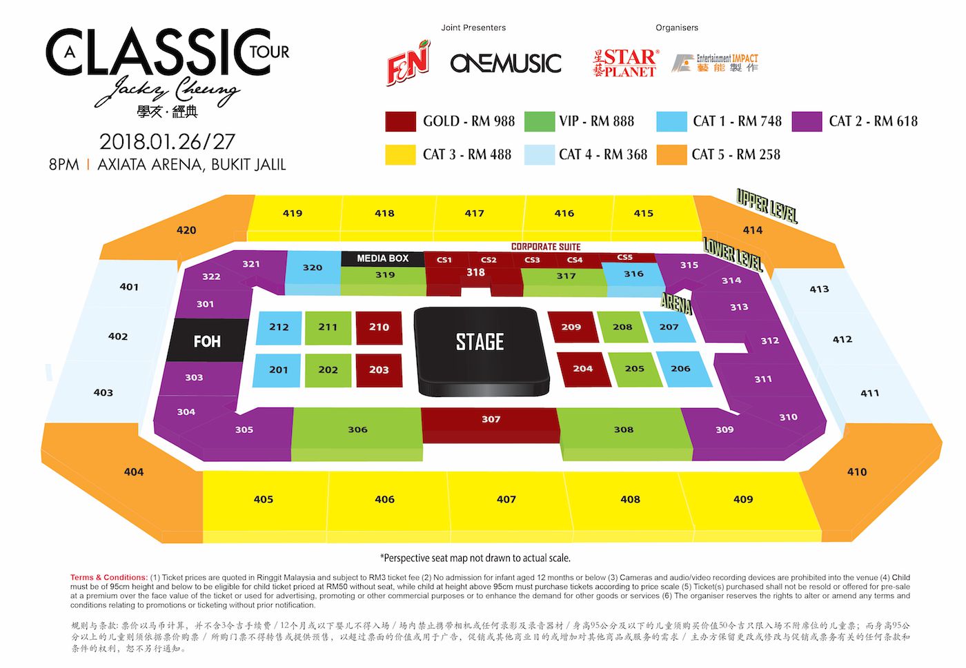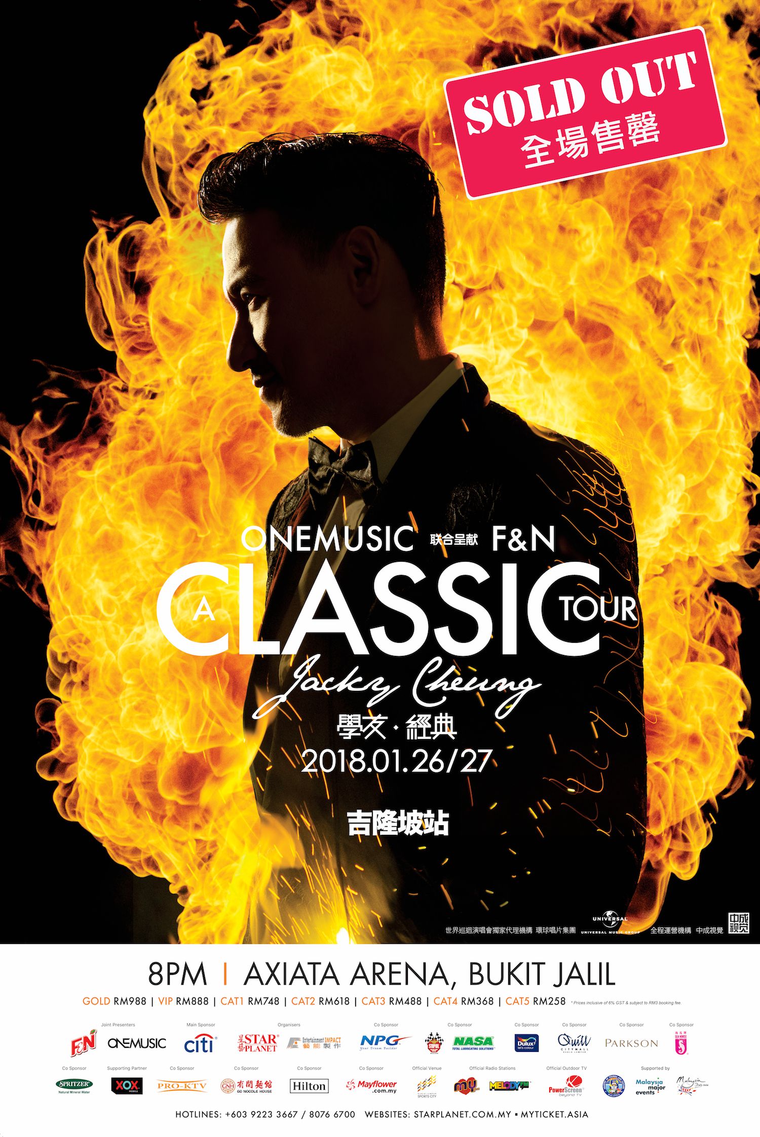 由 ONEMUSIC XOX 和 F&N 联合呈现,星艺娱乐及艺能制作联合主办, Malaysia Major Event 鼎力支持,张学友 《A Classic Tour 学友经典》巡回演唱会-吉隆坡站门票票价定为马币 988令吉, 888令吉, 748令吉,618令吉, 488令吉, 368令吉及258令吉 (未含3令吉手续费)。更多相关优惠及演唱会详情,请留