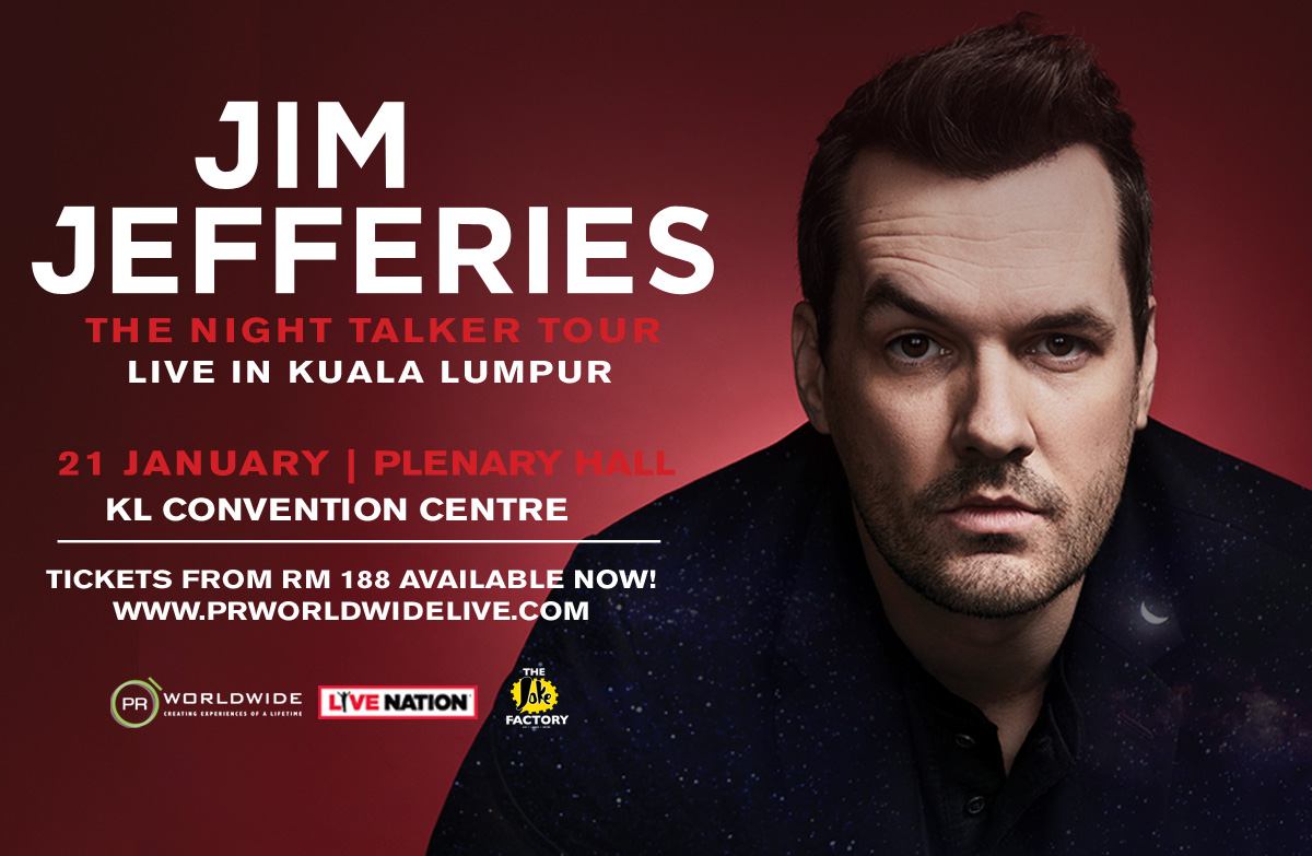 Jim Jefferies has proven again to be one of the most prolific comedians working today with his announcement of ‘The Night Talker Tour.’ Jim is set to make his first live appearance at the Plenary Hall, KL Convention Centre on 21st January, 8pm. Pre-sale for registered customers starts Tue. 30th October at 10am online thru www.prworldwidelive.com prior to the general public on-sale on Wed., 31st October, 10am.