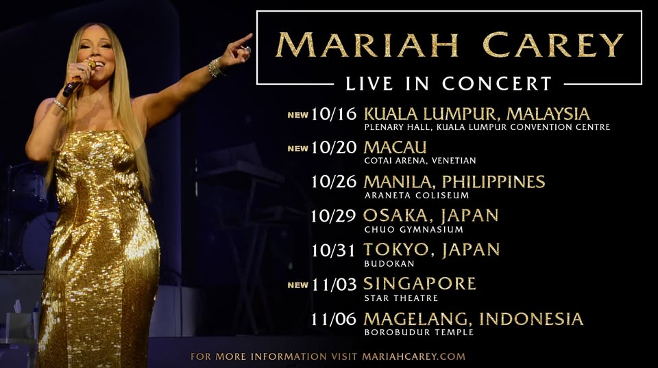 PR Worldwide and Live Nation are proud to announce that Grammy Award winner and multi-platinum selling songstress Mariah Carey is coming back to Kuala Lumpur. Proudly sponsored by Qi Group of Companies, the exclusive one-night only concert will take place at the Plenary Hall, KL Convention Centre on October 16th. The pop Diva is set to perform her much loved number one hits, bringing a brand new show to her Malaysian fans. Tickets for Mariah Carey Live in Kuala Lumpur start at RM398 and is scheduled to go on sale Friday, April 27th at 11am with an exclusive Fan Presale starting 11am on April 25th through www.prworldwidelive.com / www.myticket.asia.